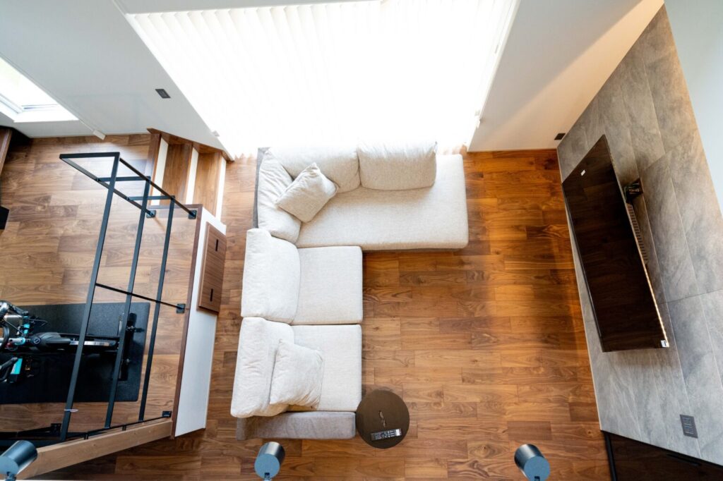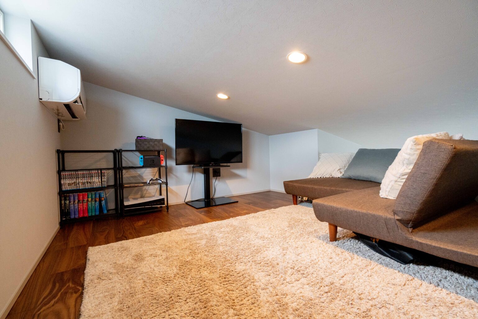 さらにスキップフロアには、趣味を楽しめるスペース。寝室の奥には、隠れ家のようなロフト。