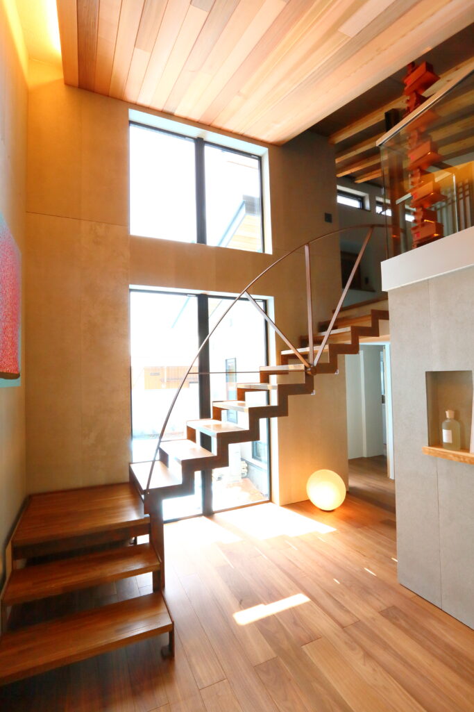 開放的なリビングや階段ホールが、家全体にのびやかな広がりを生み出します。
