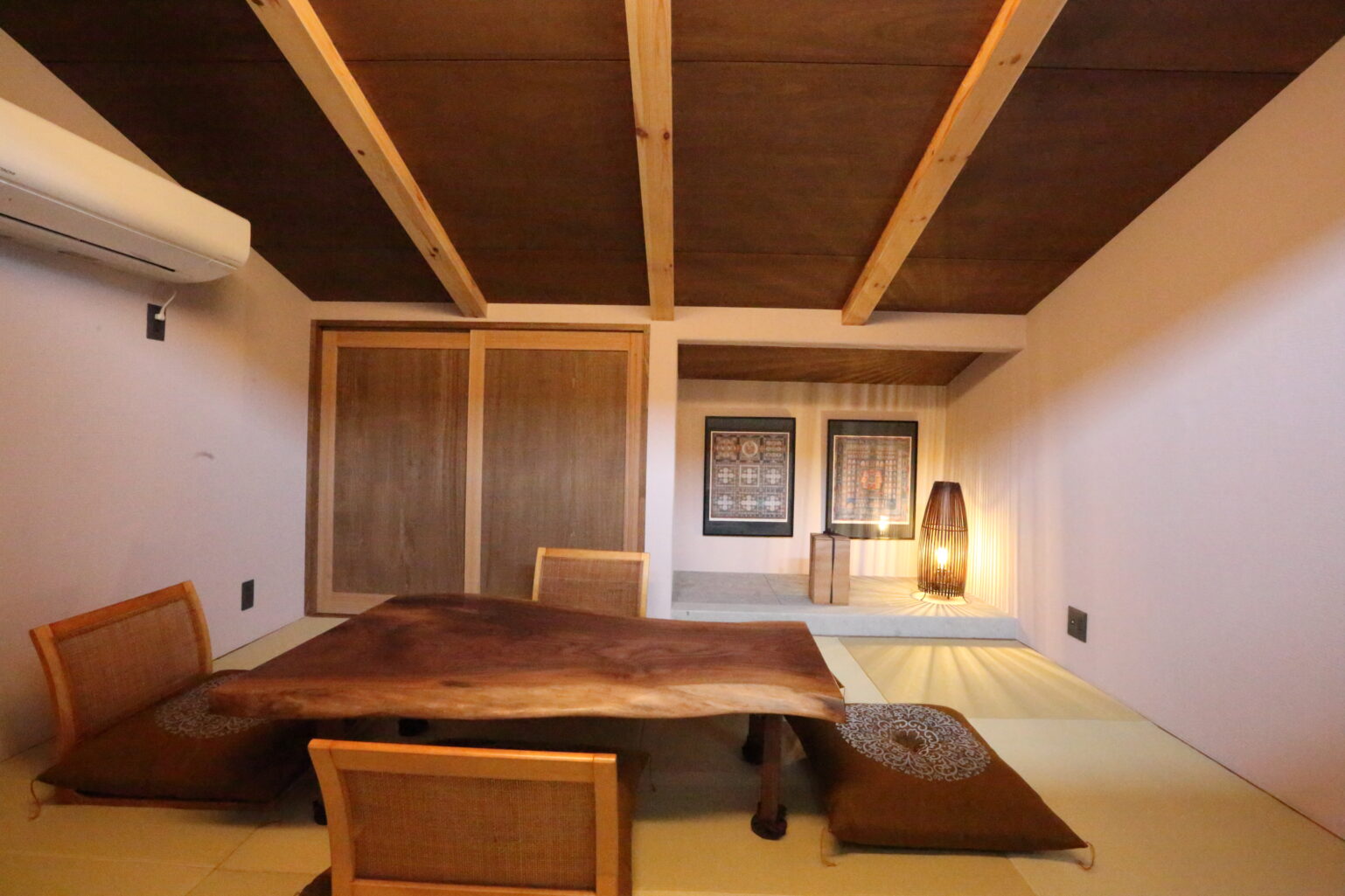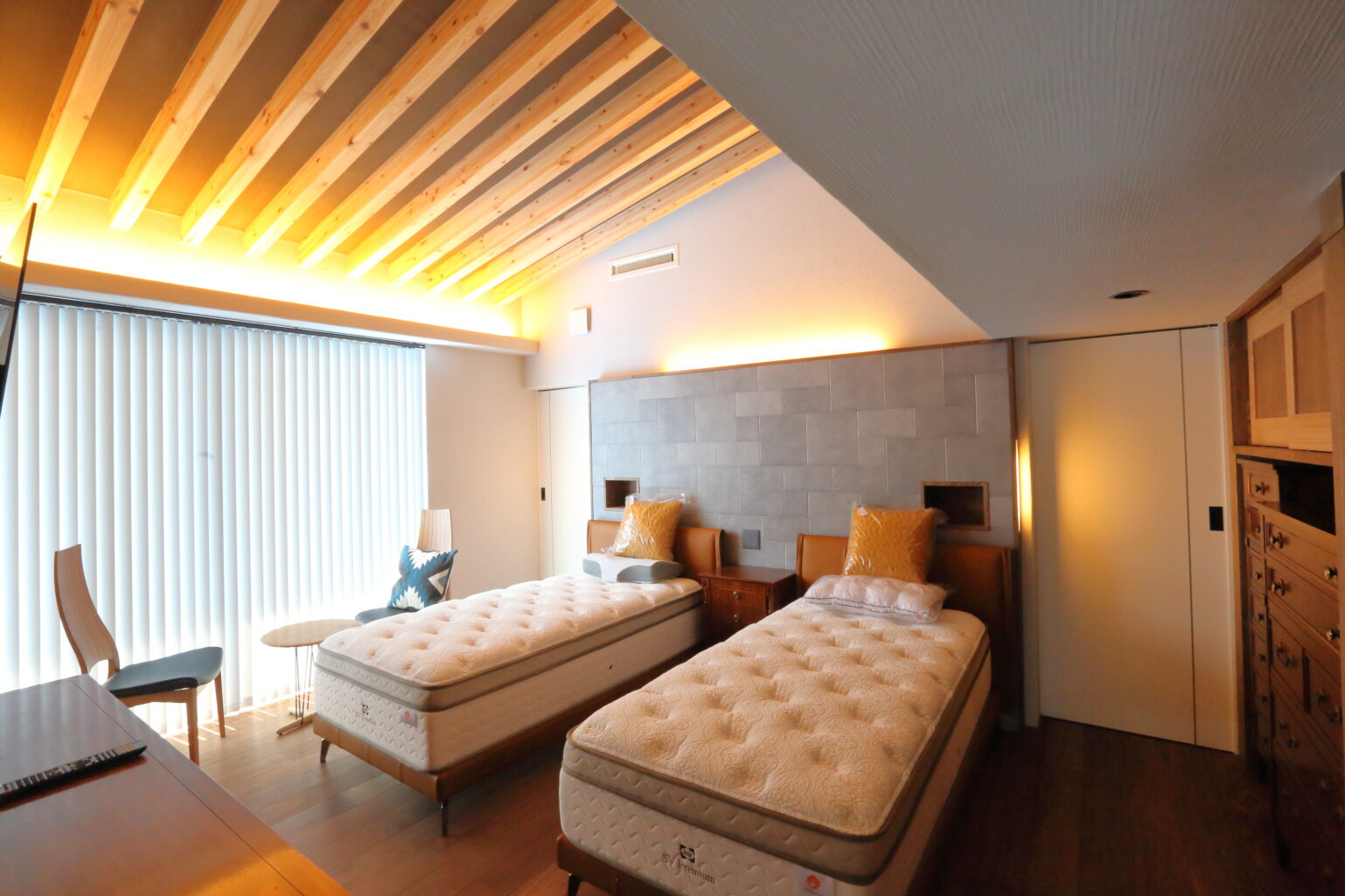 和室や寝室などのプライベート空間も、照明や素材にこだわり、穏やかに過ごせる雰囲気を大切にしています。