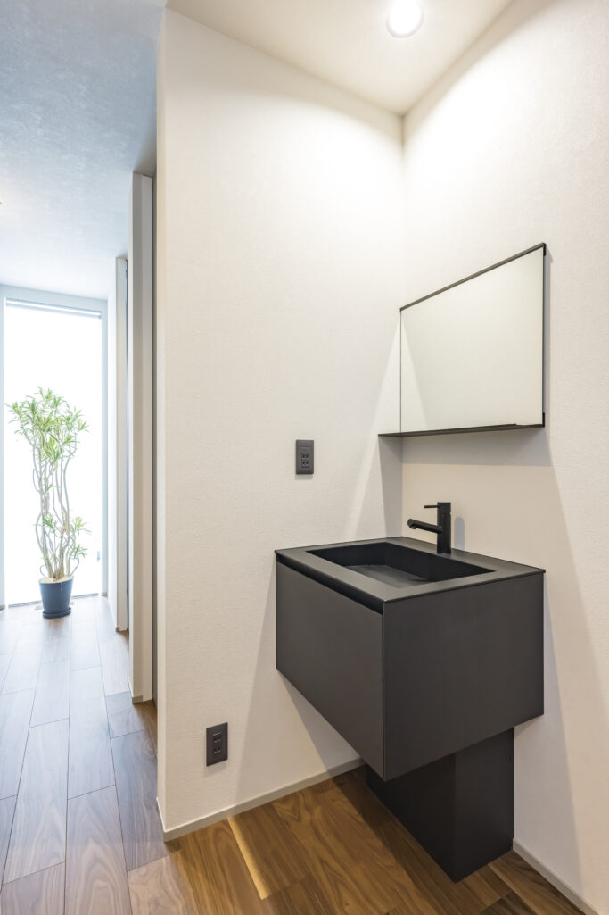 空間ごとに素材や色のトーンをそろえることで、家全体に統一感と高級感を演出しています。